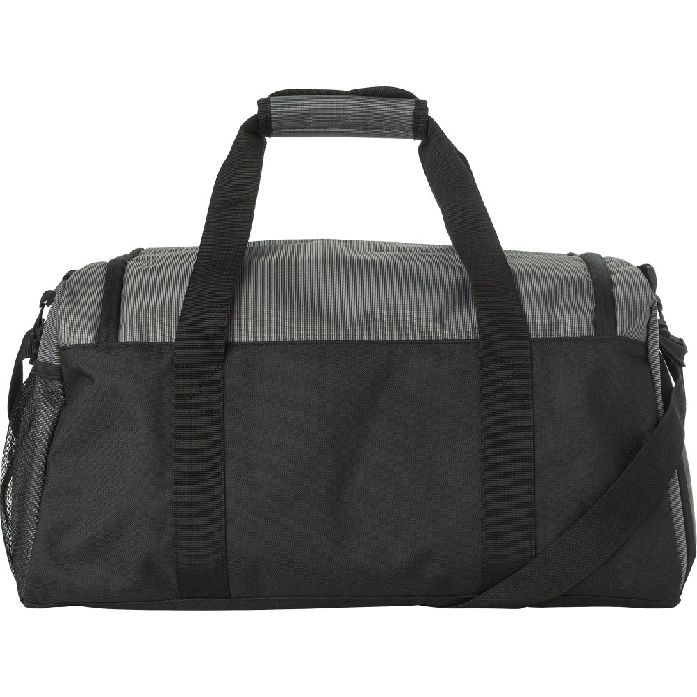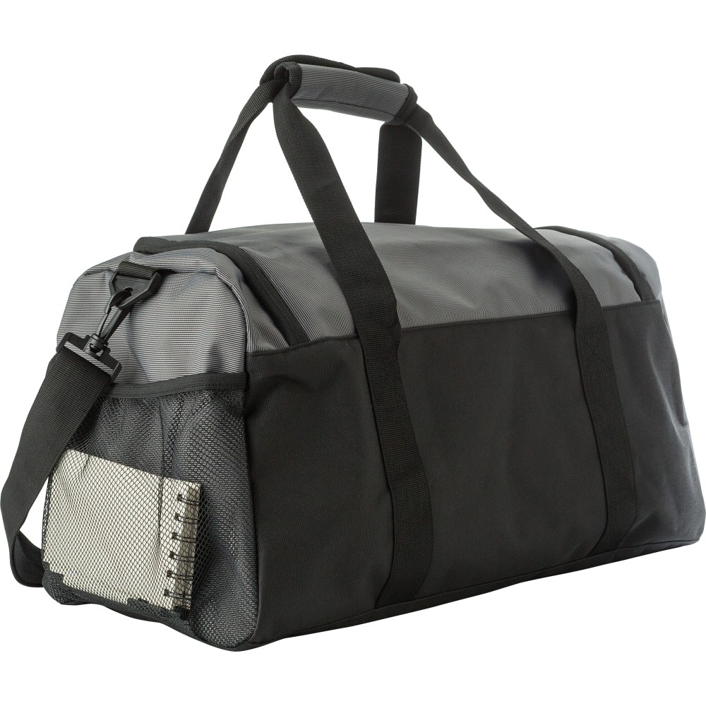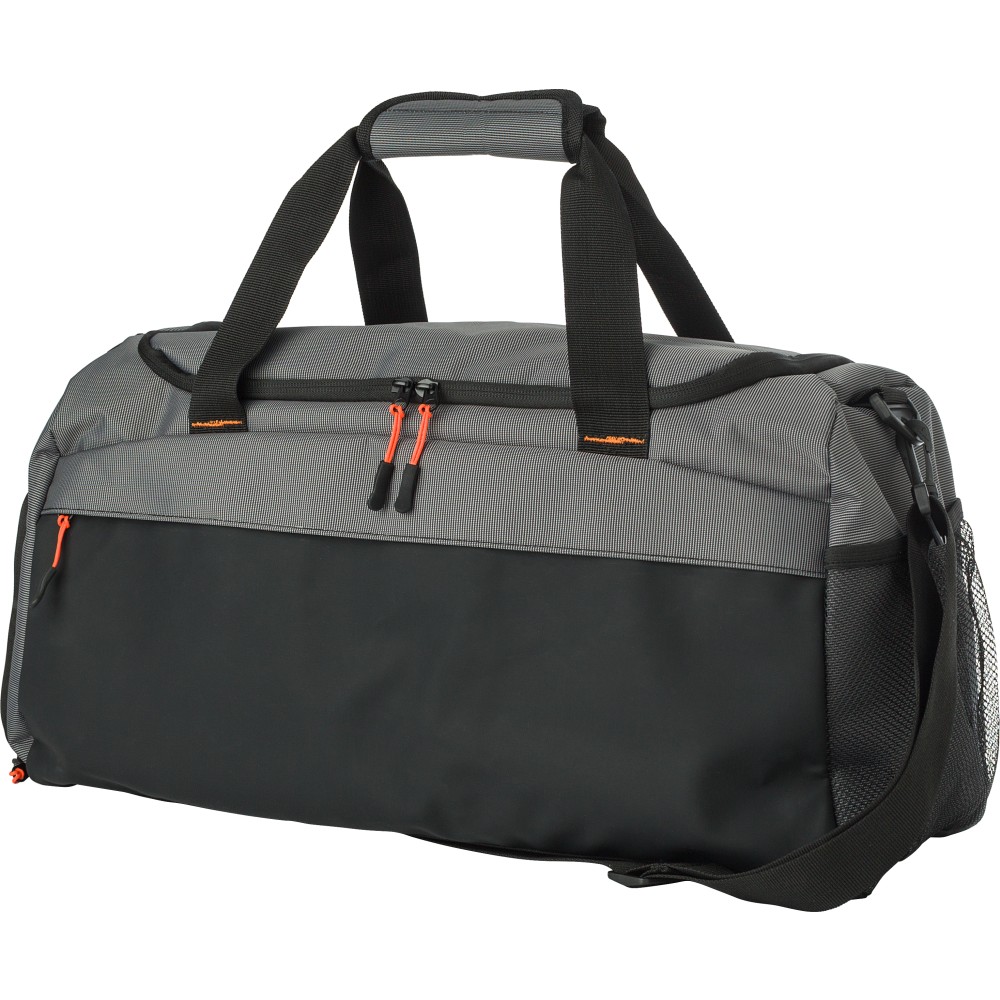 500D kéttónusú táska cipzáras elülső zsebbel. Szellőző oldalsó cipőrekesz, hálós zseb az ellenkező oldalon. Rövid fogó és tépőzár. Nagy főrekesz megerősített aljjal.