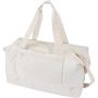 A Trip Aware® újrahasznosított utazó sporttáska sokoldalú és tágas társ, ideális rövid kiruccanásokhoz, valamint a szükséges holmik kényelmes szállításához. Tartós 290D twill poliészterből készült, puha kötött hátoldallal, RPET 210D/PU béléssel, így praktikus használatot és kényelmet biztosít. Fő rekesze nagy cipzáras zsebet tartalmaz, útlevél, tollak és kulcstartó szalag számára kialakított hellyel, valamint két belső nyitott zsebbel és dupla kulacstartóval. Külön alsó rekesze kagylószerűen nyílik, tökéletes cipők vagy egyéb felszerelések elkülönített tárolására. Minden táska Aware® nyomkövetővel érkezik, amely QR-kód segítségével lehetővé teszi a termék eredetének és útjának nyomon követését, növelve az ellátási lánc átláthatóságát és a kapcsolatot a termék gyártási folyamatával. Űrtartalom: 42 liter.