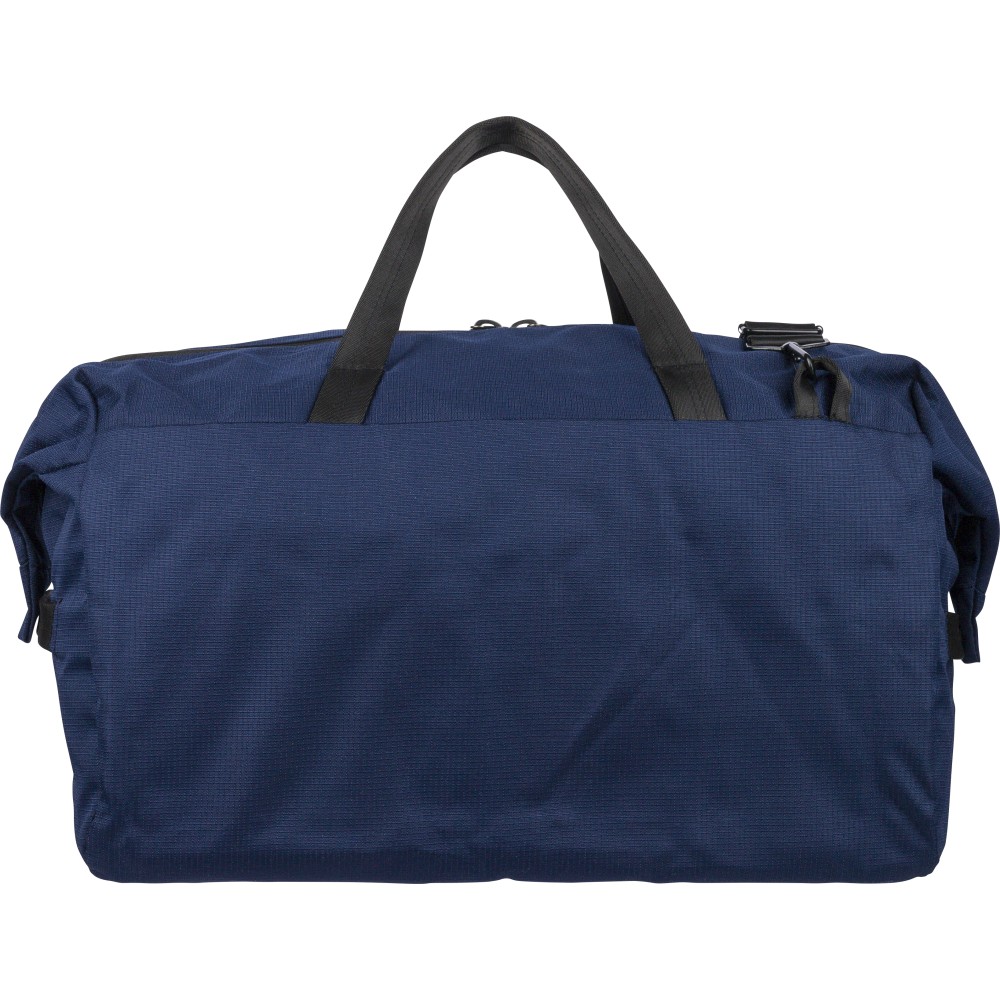 RPET 300D Ocean Bound anyagból készült sporttáska, amely újrahasznosított óceáni műanyagból készül, tartós és texturált felületű kivitelben. 33,7 literes űrtartalommal rendelkezik, nagy fő rekesszel, elülső cipzáras zsebbel és belső cipzáras tárolóval. Két erős fogantyúval, állítható vállpánttal és Ocean Bound Plastic alapanyagra utaló címkével ellátva.