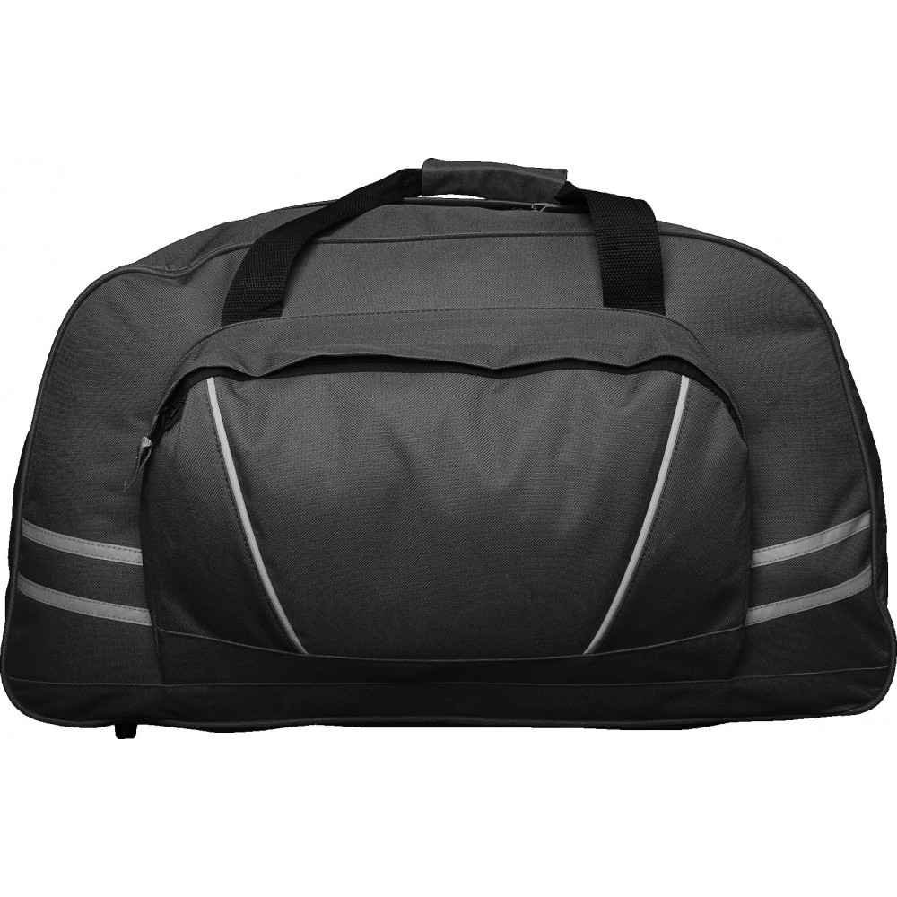Sport- és utazótáska nagy első zsebbel, fényvisszaverő csíkkal, vállpánttal. 600D poliészter.
