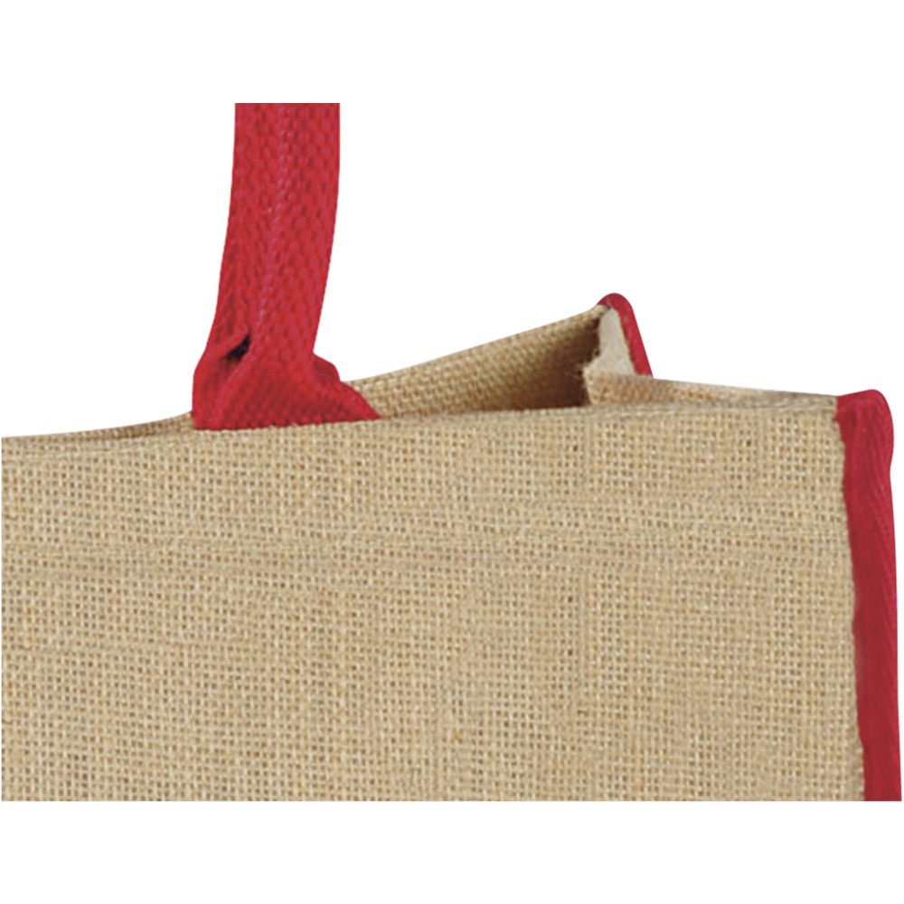 The Large juta bevásárlótáska tépőzáras kialakítással. A lehajtható fülek magassága 17 cm. Megjegyzés: finom grafikát vagy szöveget nem, csak vastag, erős nyomatott lehet az anyagon alkalmazni. Juta.