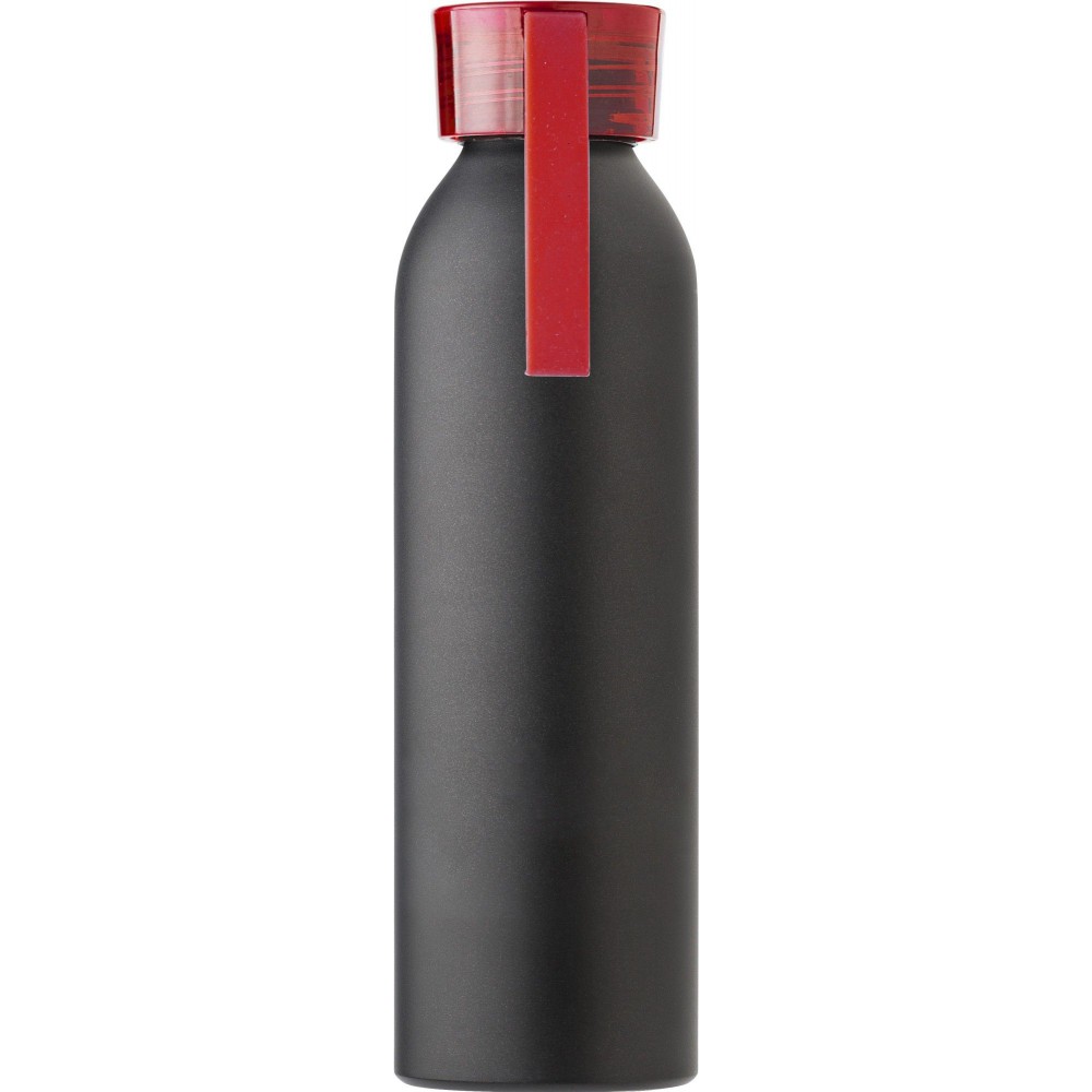 Fényes felületű palack színes kupakkal és szilikon pánttal. Csak hideg víz tárolására alkalmas. Nem szivárgásmentes. Mosogatógépben nem tisztítható. PS műanyag és alumínium. Űrtartalom: 650 ml.