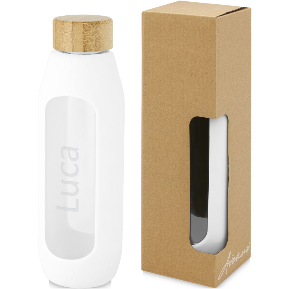 Környezetbarát újrafelhasználható vizes palack. A palack tartós boroszilikát üvegből készült, amely megőrzi a víz tiszta, igazi friss ízét, és nem tartalmaz káros vegyszereket. Szilikon markolattal és biobambuszból készült szivárgásmentes fedéllel. A német élelmiszerbiztonsági jogszabályok (LFGB) szerint tesztelték és jóváhagyták, és a REACH előírásai szerint tesztelték a ftaláttartalmat. Szivárgásmentes. Szénsavas italokkal nem használható. Mosogatógépben nem mosható és mikrohullámú sütőben történő melegítésre nem alkalmas. Űrtartalom: 600 ml. Újrahasznosított karton díszdobozban.