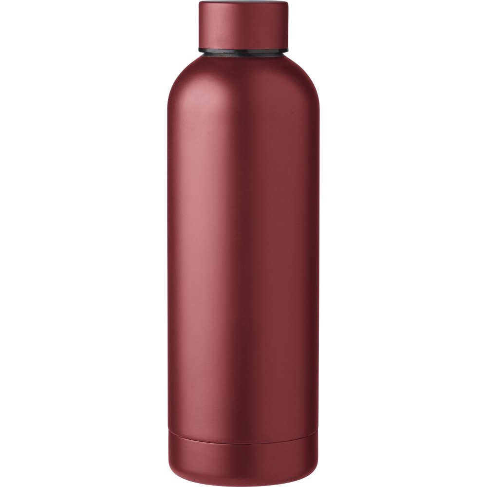 Újrahasznosított rozsdamentes acél (s/s304) duplafalú palack, matt felülettel. Barna kartondobozba egyedileg csomagolva. Űrtartalom: 500 ml.