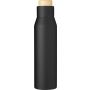 Rozsdamentes acél (s/s304), duplafalú palack fa tetővel. Barna kartondobozba egyedileg csomagolva. Űrtartalom: 500 ml.