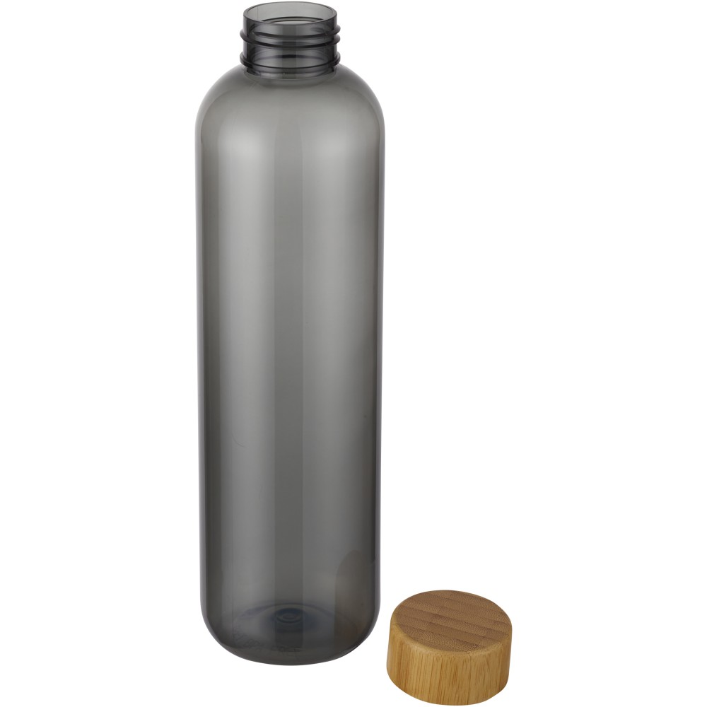 Újrahasznosított műanyagból készült vizes palack, stílusos bambuszfedéllel. A palack BPA-mentes, a német élelmiszer-biztonsági jogszabályok (LFGB) valamint REACH-szabályozás szerinti ftalát-tartalomra tesztelt és jóváhagyott. A bambusz fenntartható, környezetileg és társadalmilag felelős forrásból származik. Mosogatógépben nem mosható. Újrahasznosított kartonból készült díszdobozban szállítjuk. Nagy űrtartalmú palack: 950 ml.