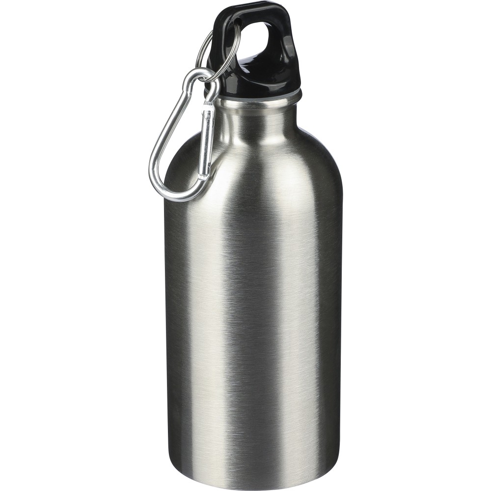 Újrahasznosított rozsdamentes acélból készült 400 ml-es szimplafalú kulacs PP kupakkal és alumínium karabinerrel. Az újrahasznosított anyagra utaló logó a palackra van gravírozva. Mosogatógépben nem tisztítható.